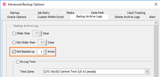 On the “Advanced Options” page, click on “Backup Archive Logs” tab and ensure that appropriate options for archive log backups are selected. Click on “OK” to go back to the previous screen and again click on “OK” to start a backup.