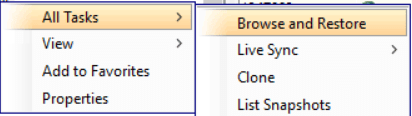 Now, login to Commvault console, navigate to and right-click on the Oracle RAC client, go to “All Tasks” and click on “Browse and Restore”. Please note that table-level restore option will only work on the Oracle RAC client and not the backup or, archive-log sub-clients.