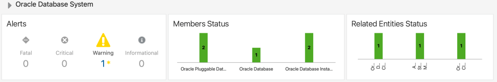 Click on Submit. Navigate to Administration –> Discovery –> “Discovery Job Status” to check the progress of database discovery. Once the job finishes successfully, you should be able to see the “Oracle Database System” entity with its associated CDB and PDB entities being monitored!!