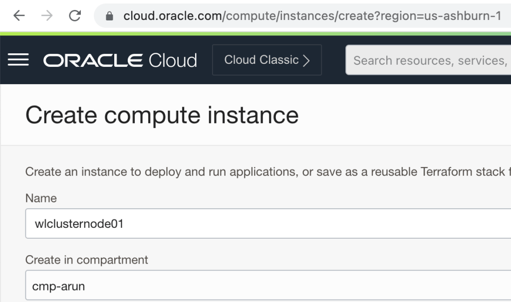 Provide a meaningful name to the instance. For this post, we will call it wlclusternode01.
