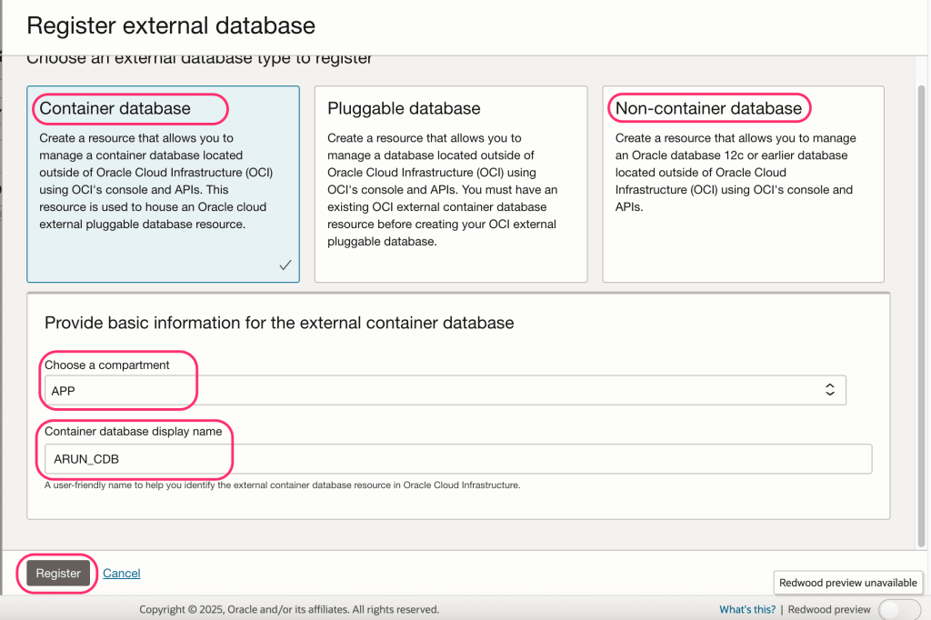 - Go to OCI Console → Oracle Databases.